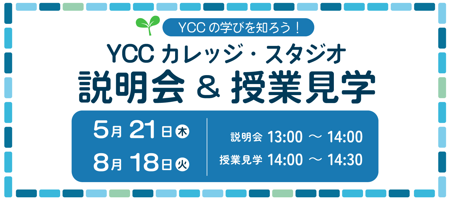 【YCCカレッジ・YCCスタジオ】YCCカレッジ・スタジオ説明会および授業見学を開催します!