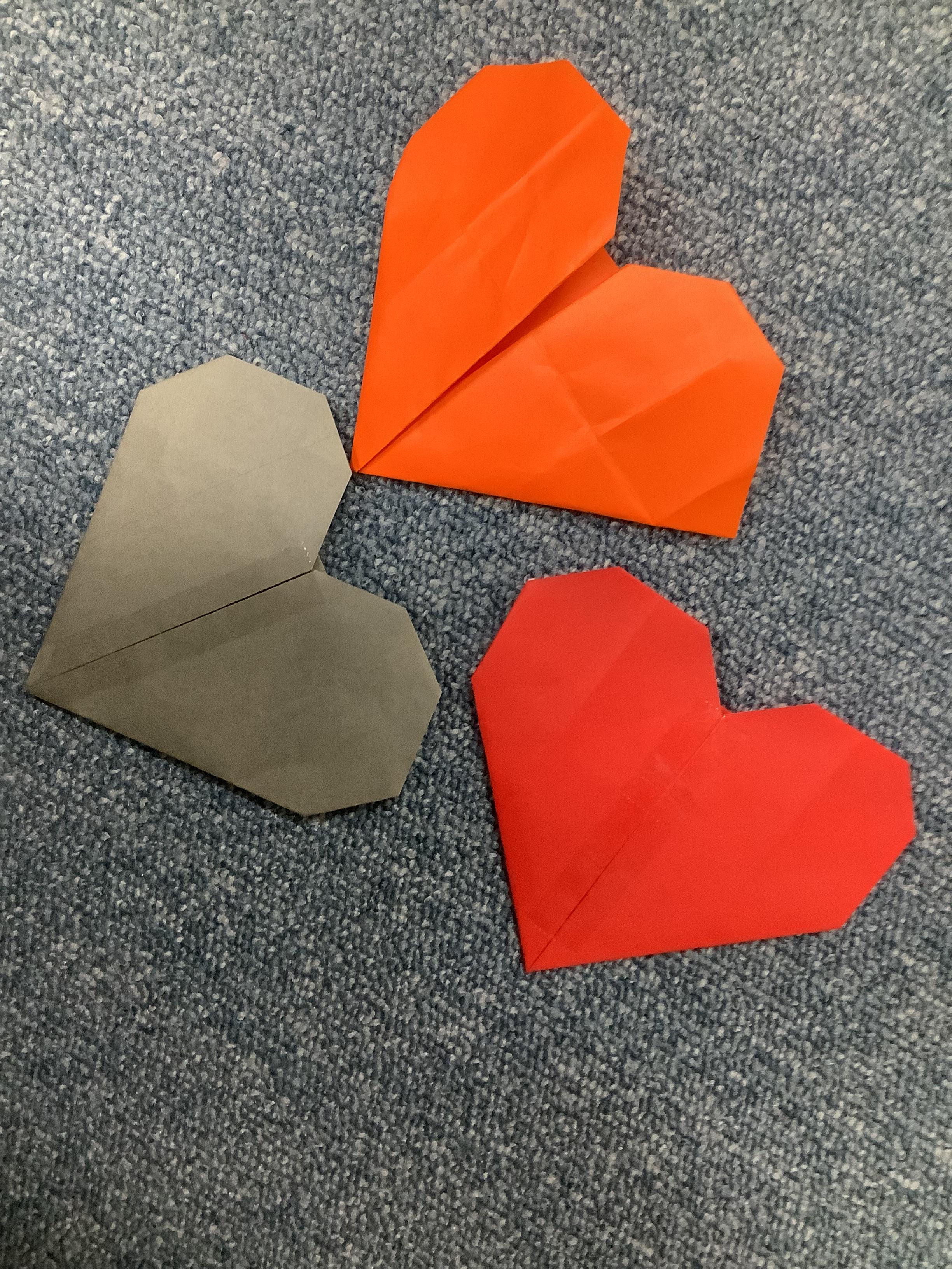 この1週間折り紙でハートを作る工作を行いました♬